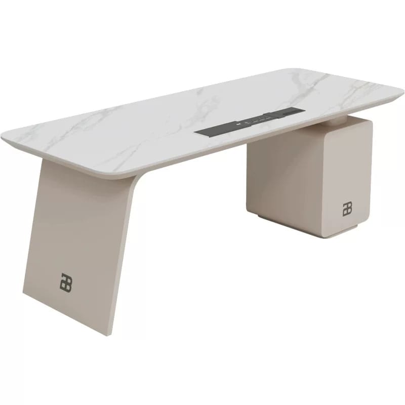 Es una excelente opción para quienes buscan un mueble elegante, duradero y con un toque de naturaleza en su espacio de trabajo. La piedra sinterizada, aporta una sensación de solidez y sofisticación que difícilmente se encuentra en otros materiales.