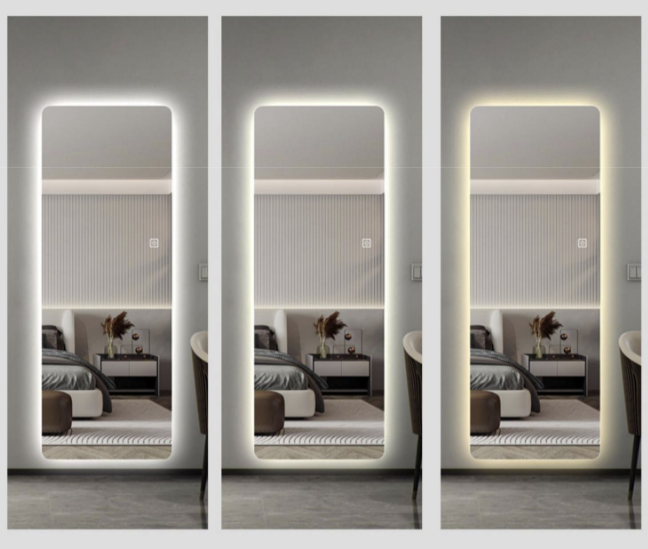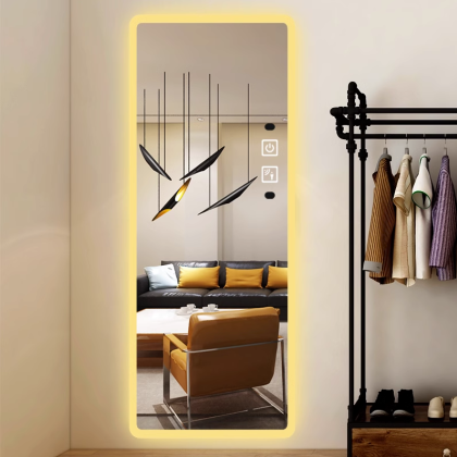 El espejo LED de cuerpo completo sin marco, simple e inteligente, combina diseño contemporáneo con funcionalidad inteligente. Con 170cm, iluminación LED de calidad y un diseño sin marco, es una práctica destacada en áreas de vestuario o dormitorios.